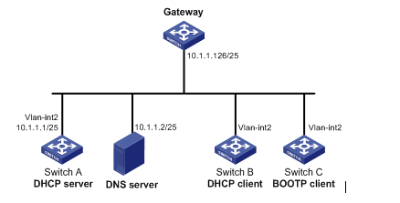 Switch B和Switch C分别作为DHCP客户端和BOOTP客户端,从DHCP服务器Switch A获取IP地址