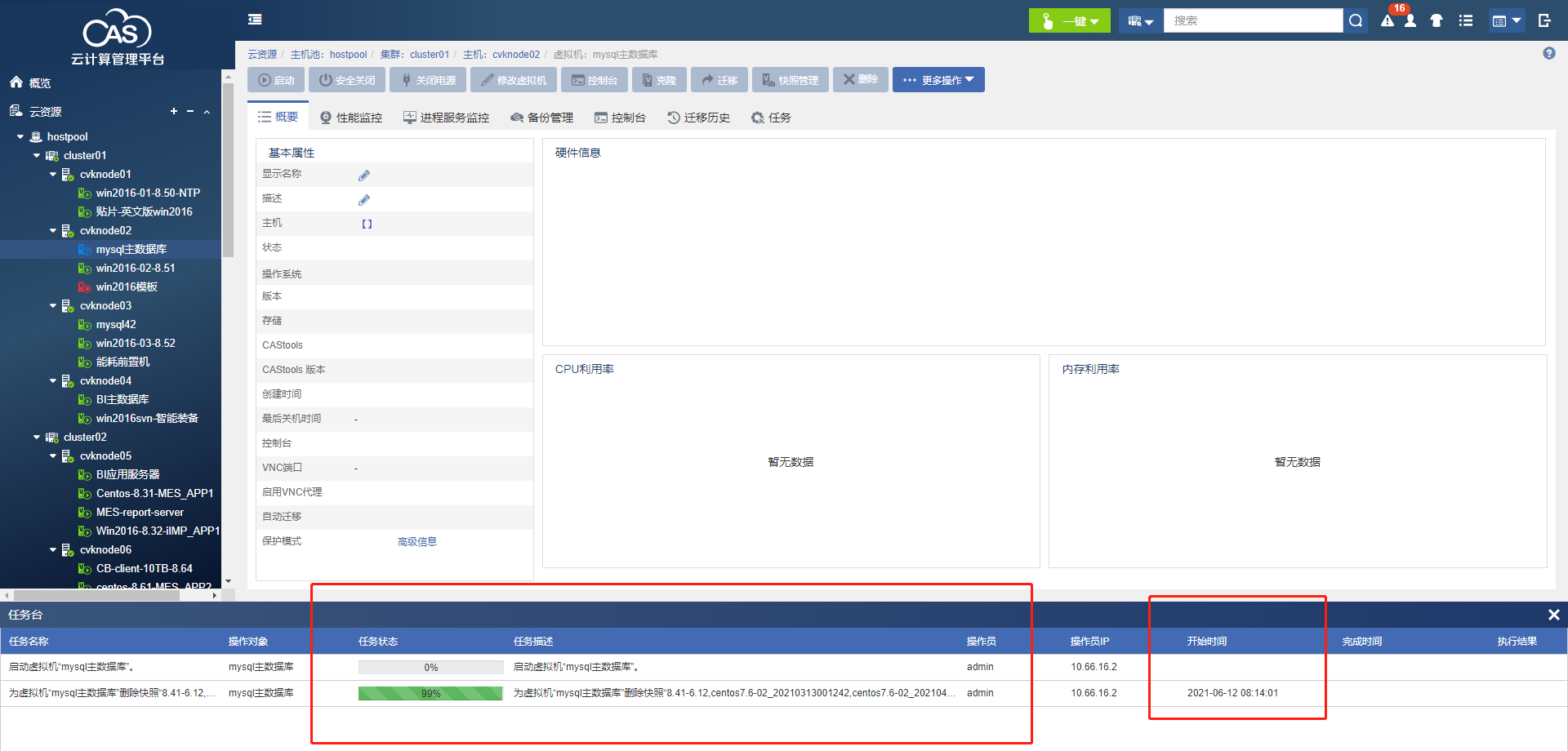 H3C云计算平台删除MYSQL数据库服务器虚拟机快照非常久而且看不到真实的执行完命令的时间,该命令从早上8点14分开始执行但是到下午4点35分还没有执行完毕一直显示百分之九十九,删除快照总是有8个;请问这样的情况怎么解决只能等命令执行完毕?请问这个命令需要执行多久怎么知道执行完毕真实时间?