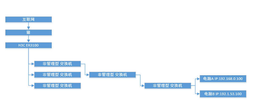 请问这种方法是否要限制我设备接入路由的端口? 我是以下网络结构,请问 电脑A 和 电脑B 是否这样设置可连接网络?