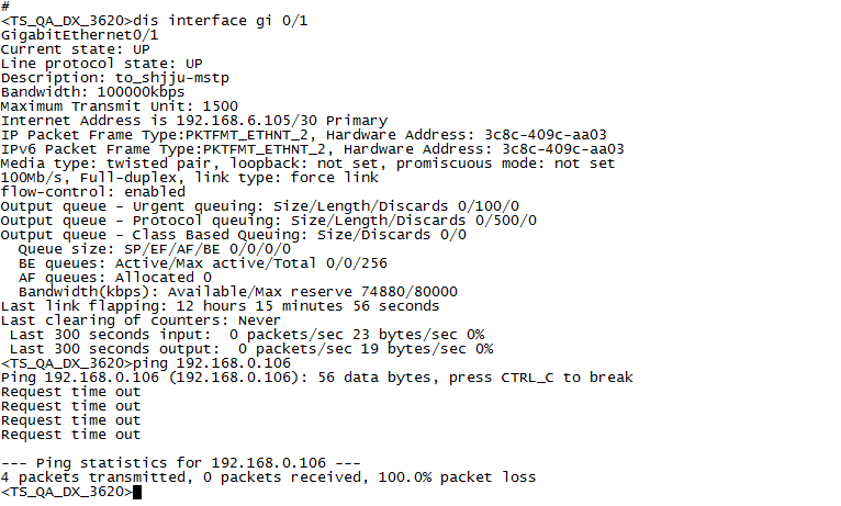 2、进一步检查物理链路是否正常,本端和对端端口的速率、双工模式是否一致。