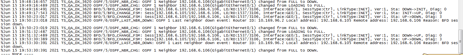 看到OSPF的状态不稳定。