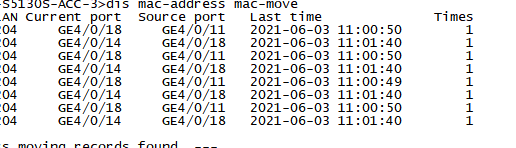 如果MAC地址迁移频繁出现,且同一MAC地址总是在特定的两个接口之间迁移,那么网络中可能存在二层环路。可以通过查看MAC地址迁移记录,发现和定位环路。