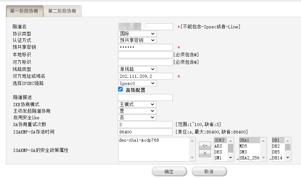 4、检查ipsec proposal(v5平台) /ipsec transform-set(v7平台)参数两端是否一致(封装模式、安全协议、验证算法、加密算法)