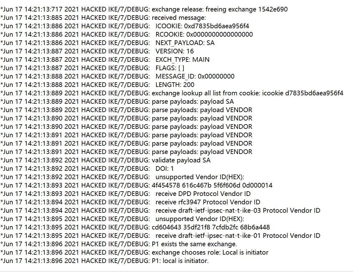 H3C F100,软件版本V5.2,与天融信VPN始终建立不起来第一阶段协商,debug信息及配置信息在附件中,求各位大神帮忙分析一下原因。