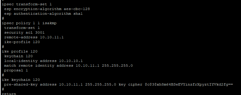 3、检查ike keychain/ike profile 协商参数配置是否正确(工作模式、keychain、identity、本端/对端隧道地址或隧道名称、NAT穿越功能v7自适应)