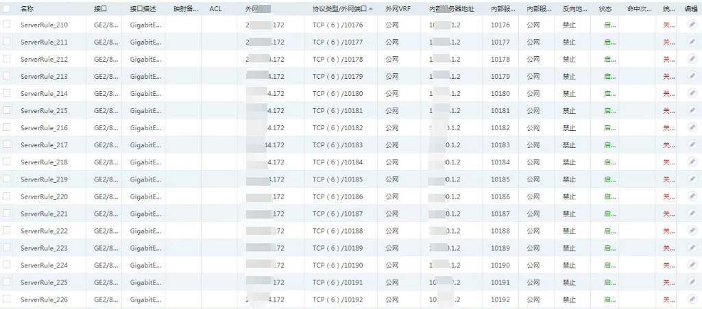 目前现场有台服务器的1000-13999端口需要一对一映射到公网上,公网出口ip为x.x.x170/29,对端运营ip为x.x.x.169,使用x.x.x.172作为公网地址。