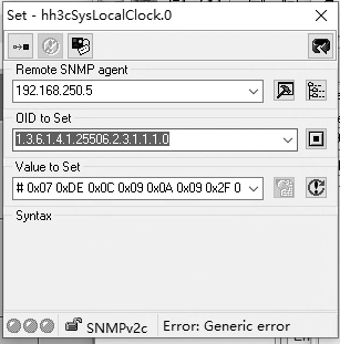 目前交换机无法登陆 因为password-control 导致所有用户无法登陆,需要修改时间,现在用snmp write community 进行修改时间 总是失败 可以读取时间16进制的 但是无法设置