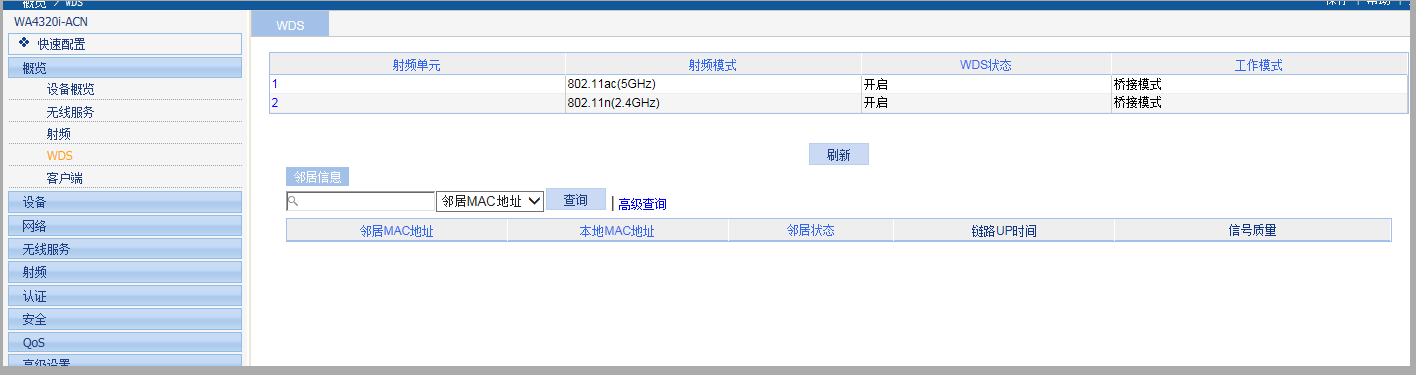 AP2的配置与上述配置类似,只需要将WDS邻居MAC地址设置为AP1的MAC地址。