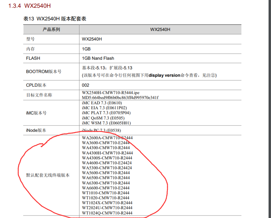 第一张图:配套无线终端版本的重点落在版本二字上,看这个左上角列表的标题是2540H版本配套表,指的是AC是5444版本,则对应的AP的版本是2444,是按照AP的系列来说明的。一般也是要求AC和AP版本是匹配的。