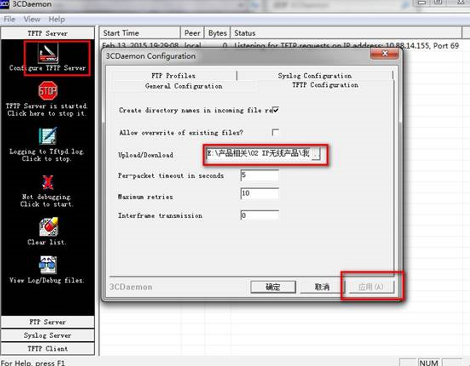 (2)搭建TFTP服务器,将软件版本从服务器上传到设备(下载3CD软件)
