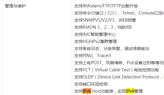 ’支持IPv6 host功能族,实现IPv6管理‘官网上只有这一个关于IPV6的描述,算支持IPv6吗?