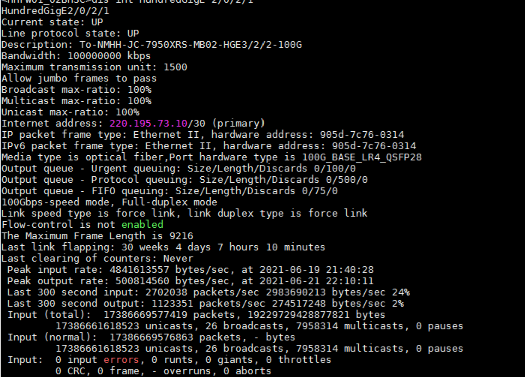 接口流量是2983690213/1000000000*8=23.9G,24%正常