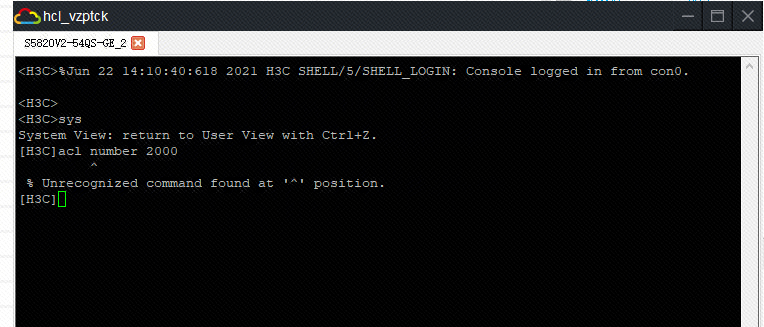 模拟器HCL_V2.1.2 建立ACL 用 acl number 2000 显示 % Unrecognized command found at '^' position.