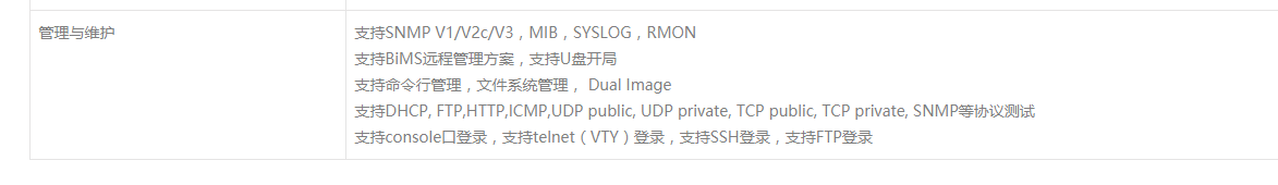 支持SNMP V1/V2c/V3,MIB,SYSLOG,RMON