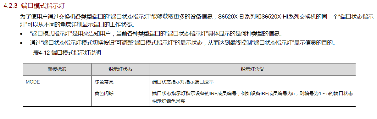 · “端口模式指示灯”是用来告知用户,当前各种类型端口的“端口状态指示灯”具体显示的是何种类型的信息。