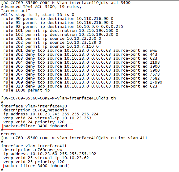 3、其次确认ACL应用的方向是否准确,可尝试outbound方向也调用看下。