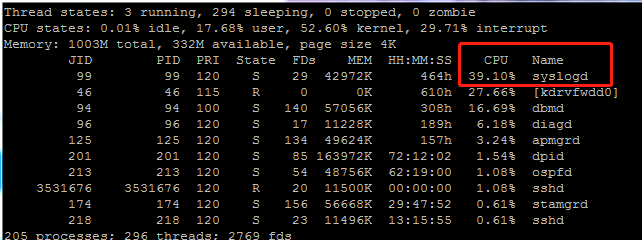 2、另外看到syslogd这个进程利用率高,可以尝试undo info-center enable关闭信息中心看下是否能降低。