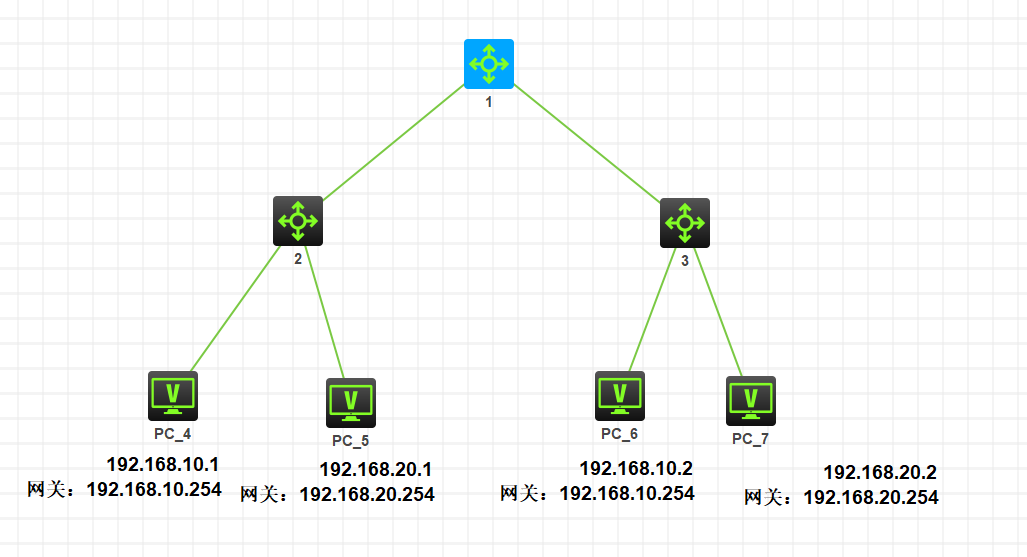 假设交换机1下联的交换机2 3 为傻瓜式交换机 傻瓜交换机连接不同网段的设备