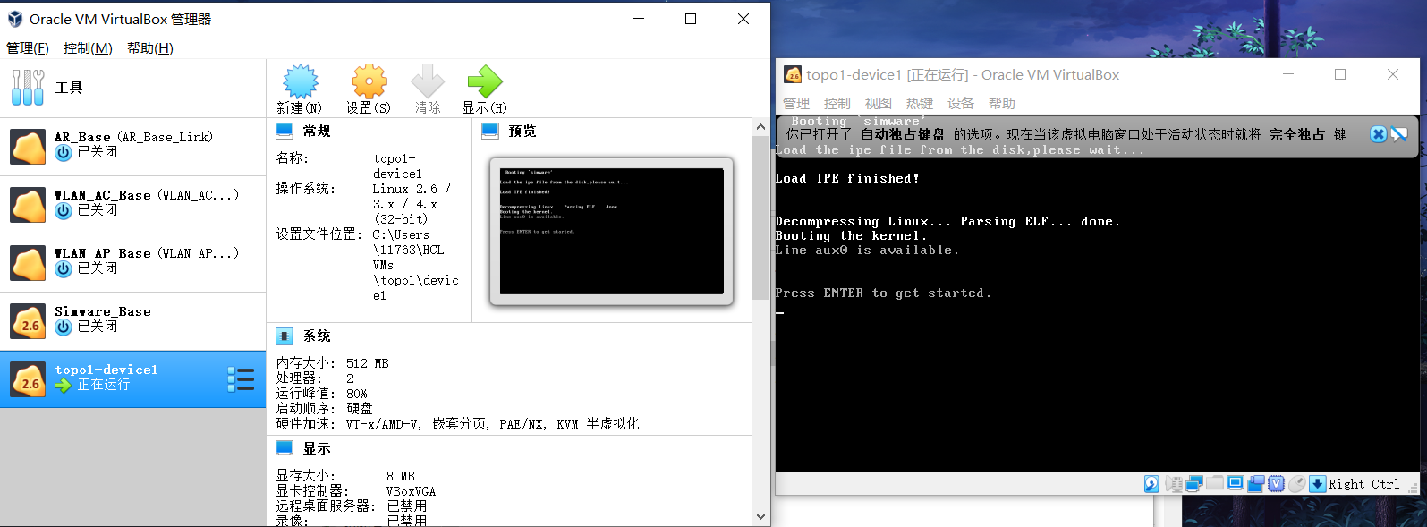 2、重装HCL和virtual-box,不使用中文路径或中文系统名。