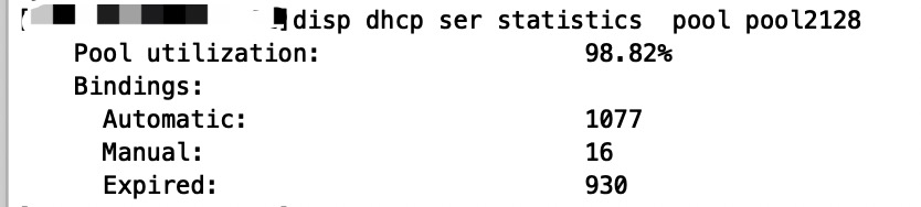 使用命令disp dhcp ser statistics pool pool2128显示指定dhcp pool利用率,明明不高,但是统计的利用率却很高,这是怎么回事?
