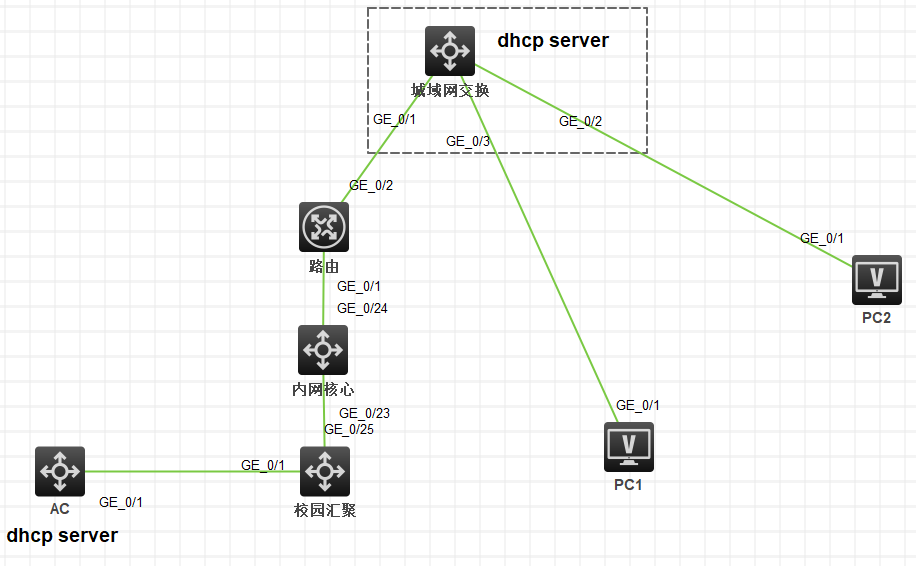 城域网这个交换机是第三方设备不能动,开了DHCP,PC接上可以上网