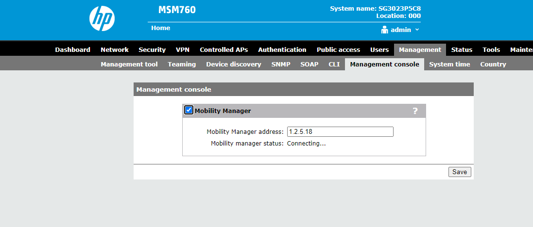 HP MSM760配置管理IP 始终处于连接中的状态,请问该如何修改配置使其连接成功呢