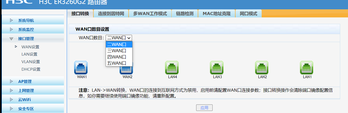 页面向导:接口管理→WAN设置→多WAN工作模式