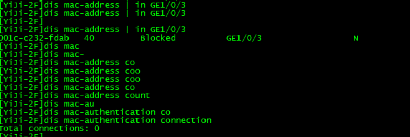 Block:MAC地址认证特性的MAC地址表项,表示该表项是MAC地址认证失败用户的MAC地址表项