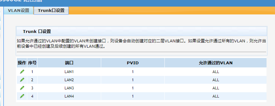 页面向导:接口管理→VLAN设置→Trunk口设置