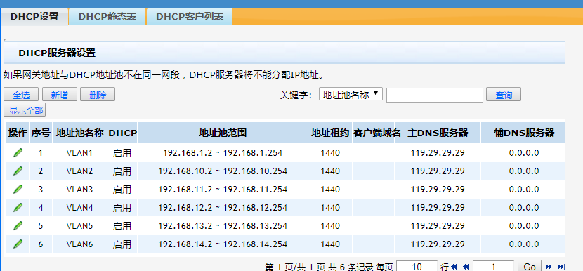 页面向导:接口管理→VLAN设置→VLAN设置