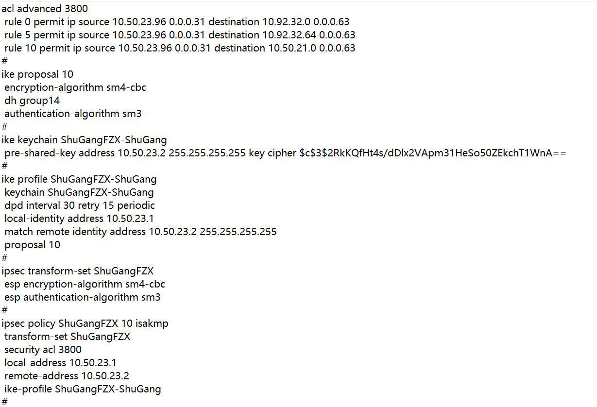这是两台防火墙的vpn配置   (两台设备对应接口已应用)