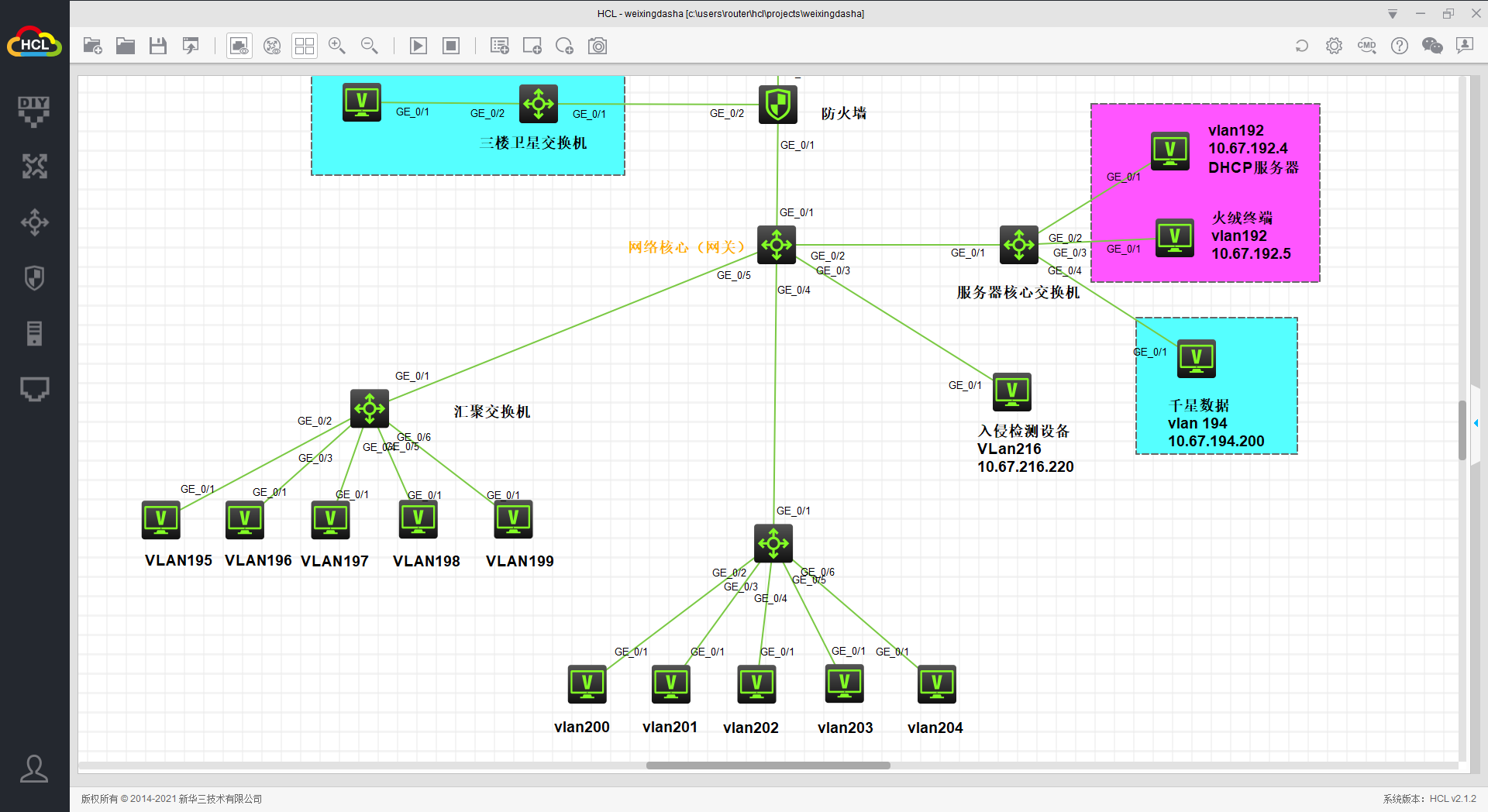 所有网关在核心,vlan200网关 10.67.200.254,vlan201网关10.67.201.254,以此类推,
