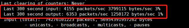 Output (total): 87182528303 packets, 24387066427420 bytes 84864862021 unicasts, 888579222 broadcasts, 1429087060 multicasts, 0 pauses