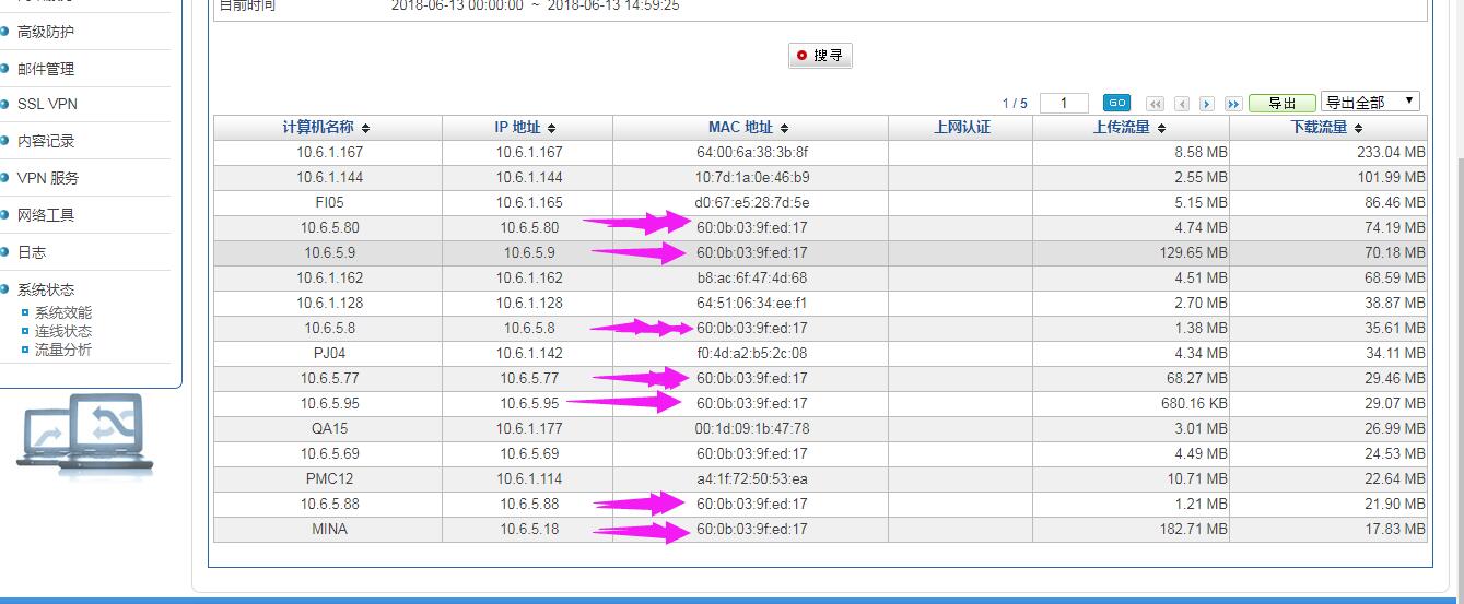 H3C S5500 24P划分VLAN5网段后,在防火墙上看到VLAN5网段电脑的IP地址后面的MAC地址全是H3C的MAC?这是什么原因,能改过来吗?