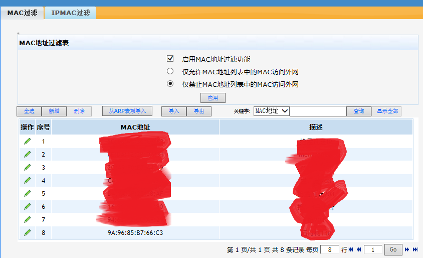 通过MAC过滤功能,您可以有效地控制局域网内的主机访问外网。路由器为您提供两种MAC过滤功能: