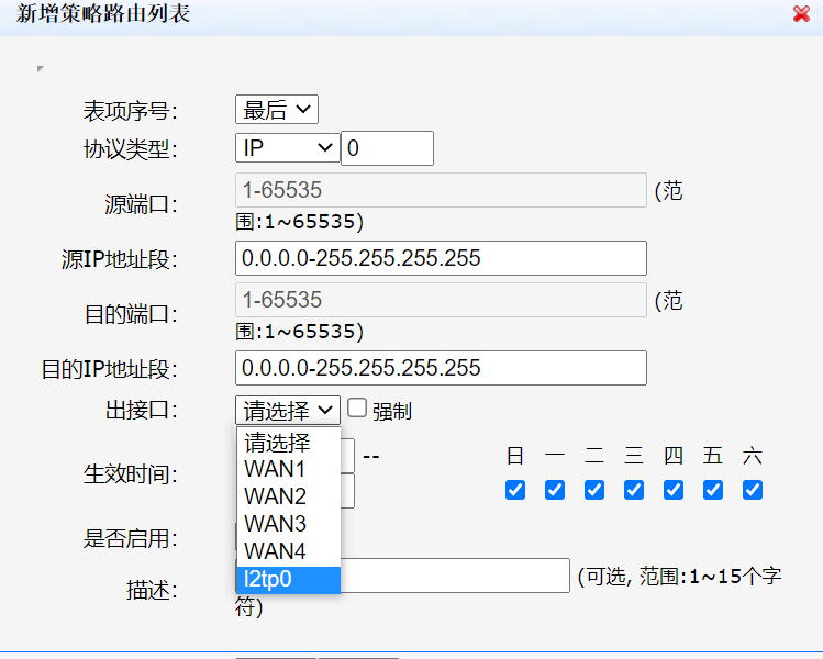这个是路由器作为LAC客户端通过L2TP VPN与LNS建立VPN隧道后,要访问LNS内部的网络时才选用的出接口。