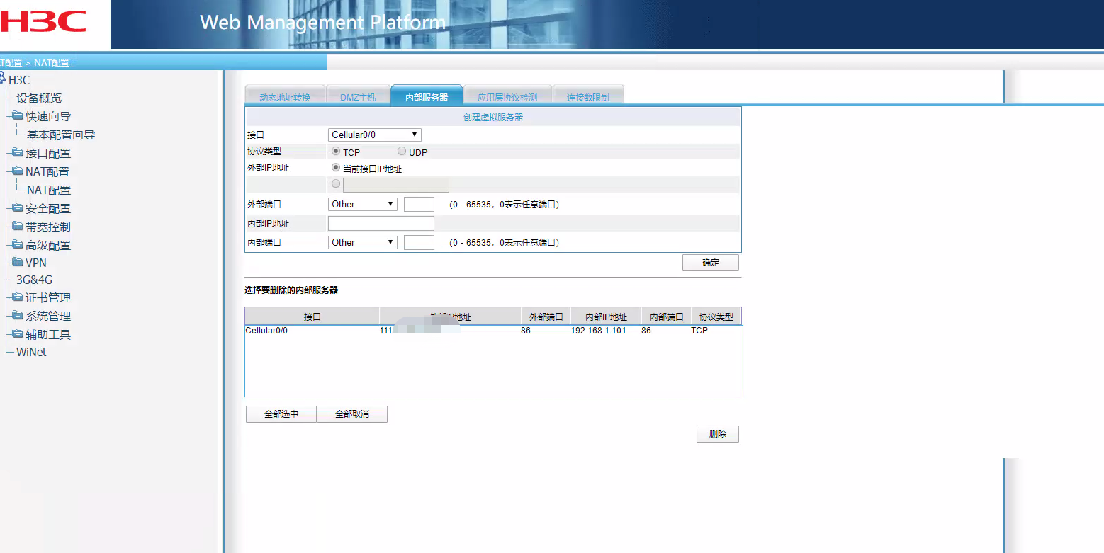 产品 华为H3C MSR830 需要做外放访问映射 求大神指导