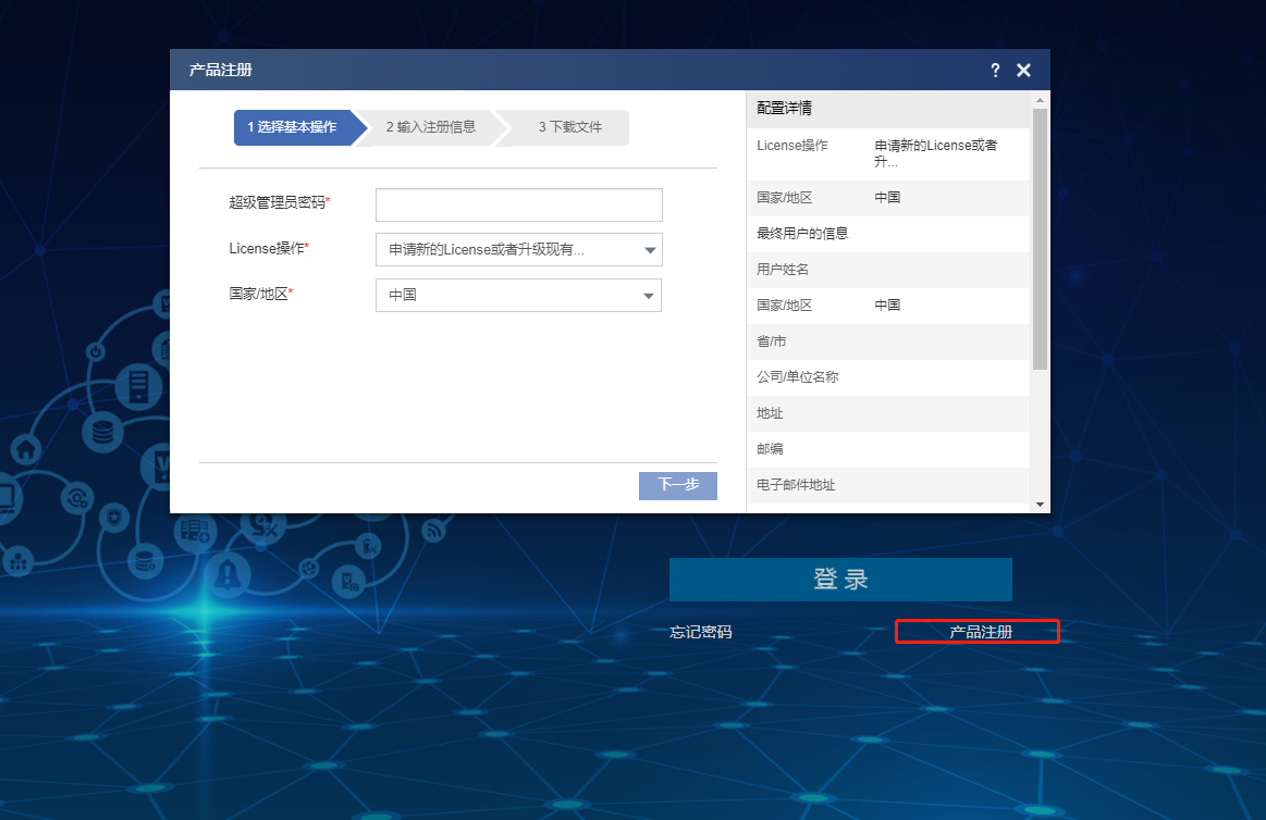本地授权的话可以直接在登录界面点击“产品注册”来激活