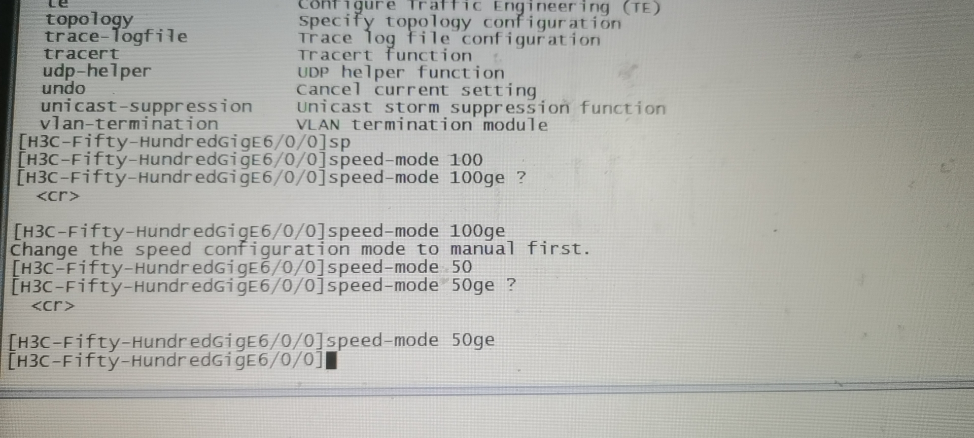 使用speed命令修改端口速率。