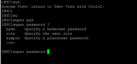 [H3C-luser-manage-admin]password simple admin