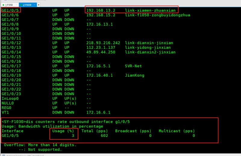 1.查看接口进方向的使用率:dis counter rate inbound interface
