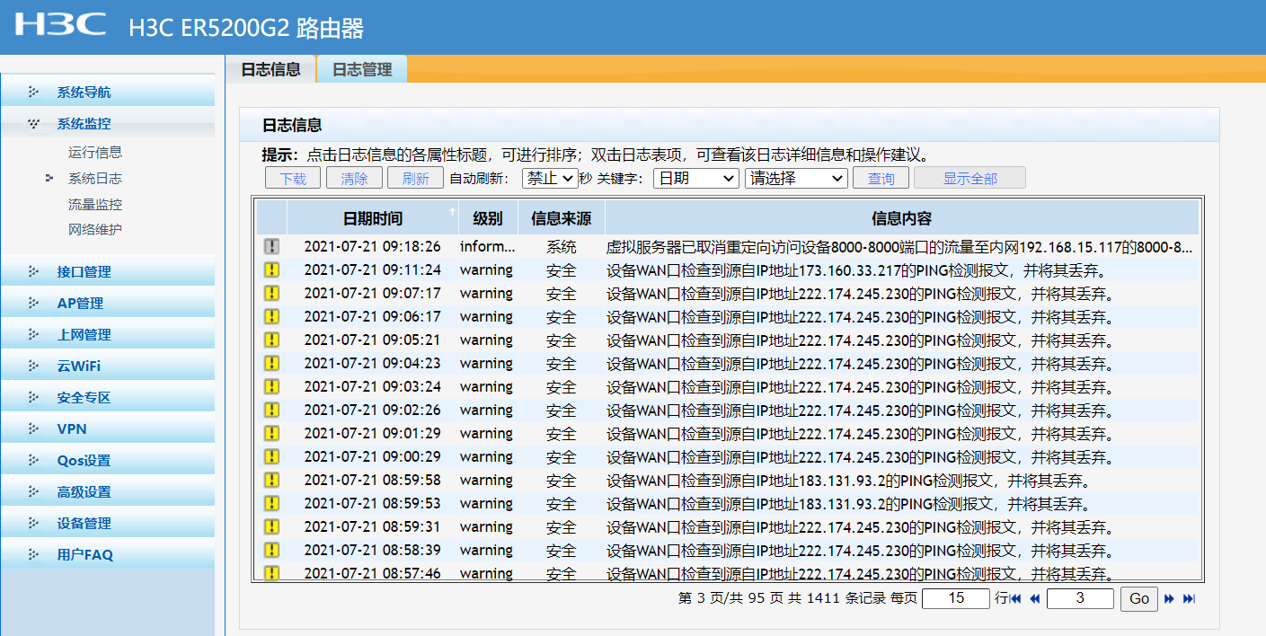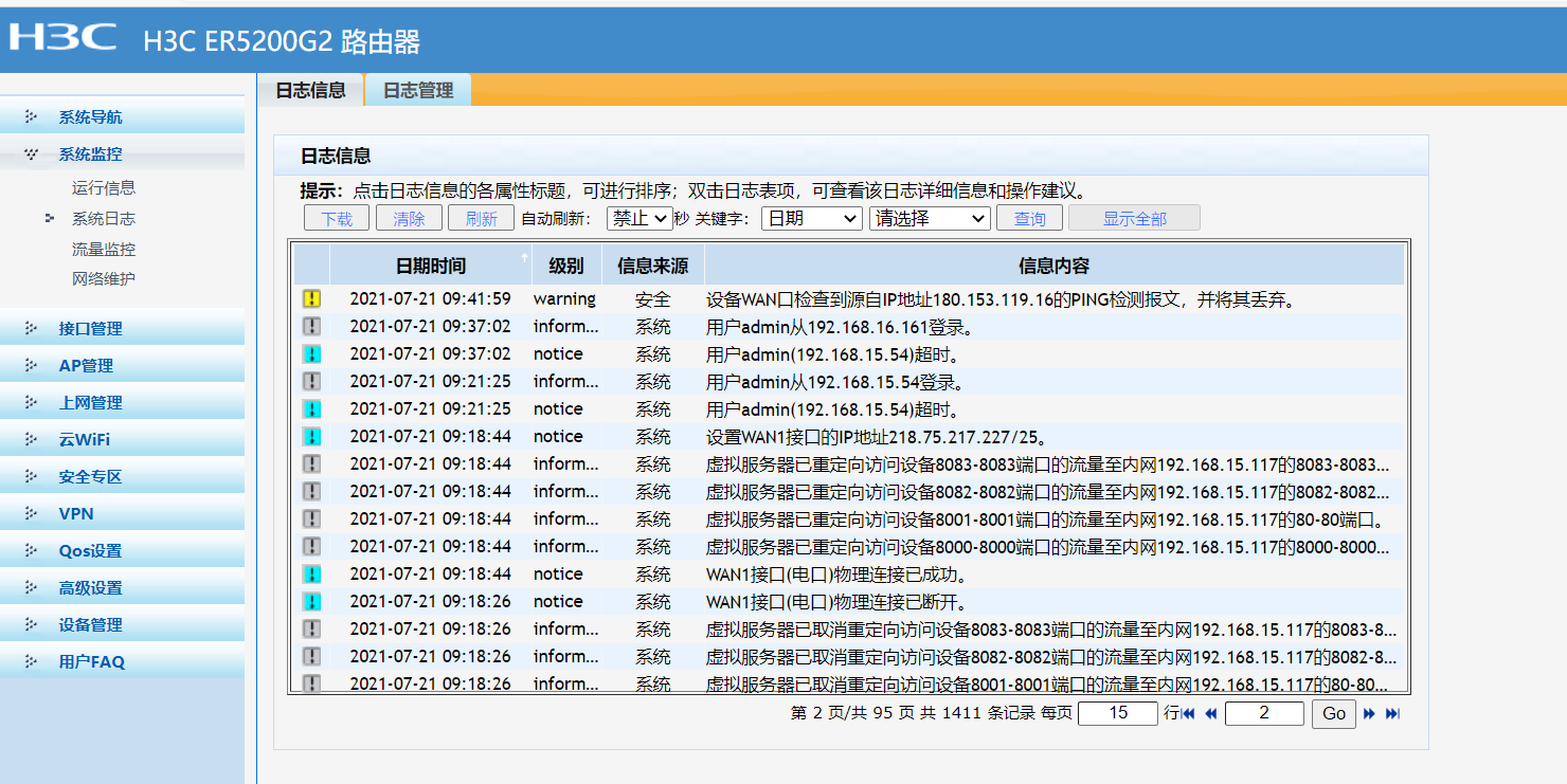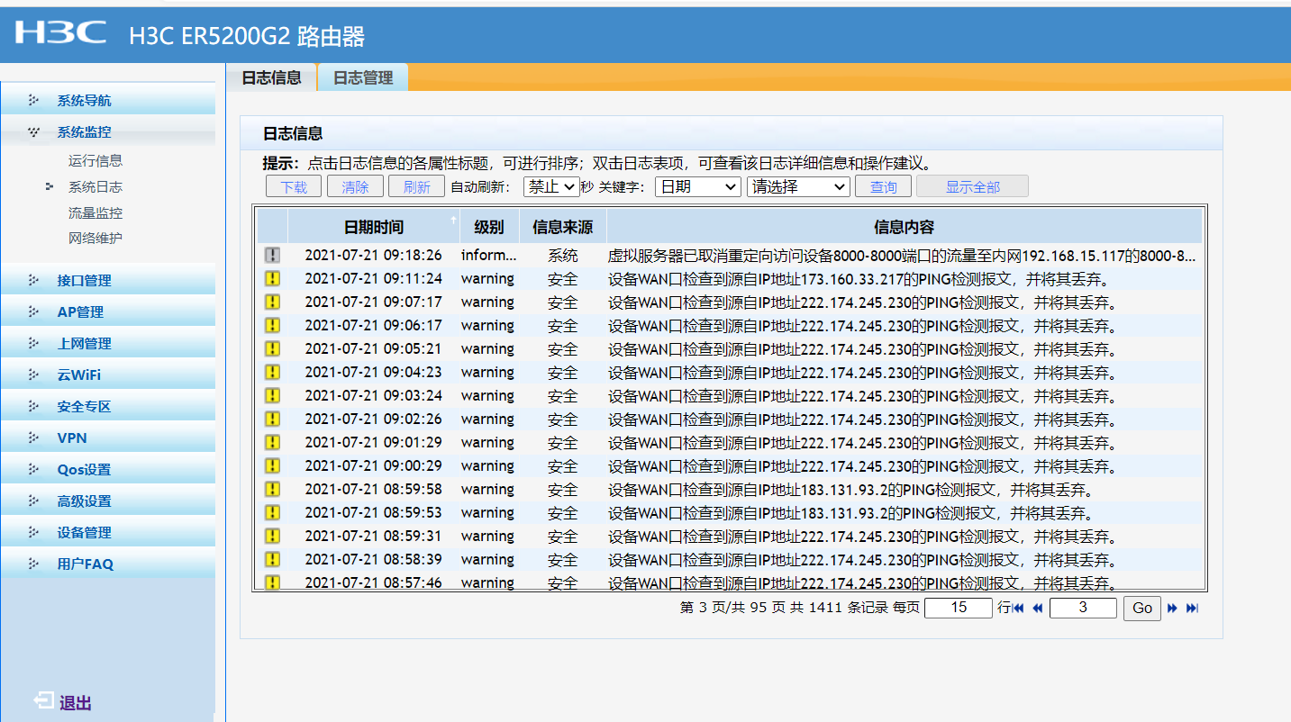 每天不定时闪断网络,虚拟服务器已重定向访问设备8083-8083端口的流量至内网