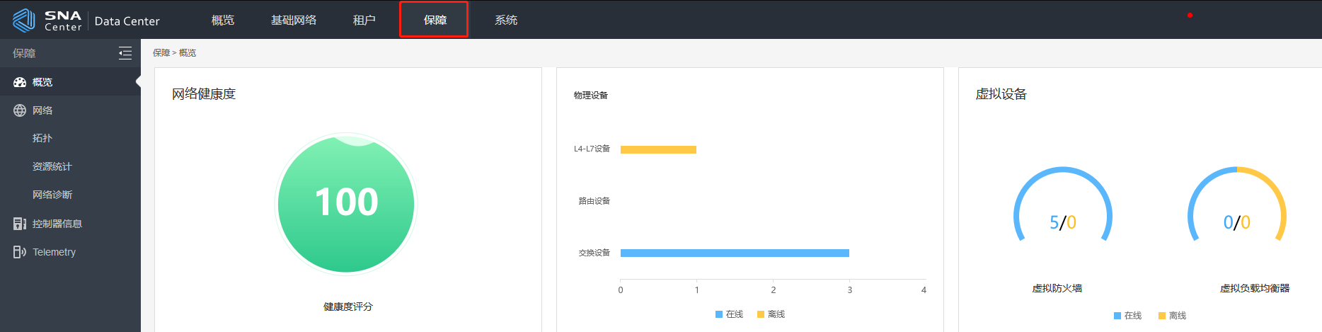 最近发现在SNA Center控制器中保障-概览中查看到L4-L7设备的状态是出于离线的状态。