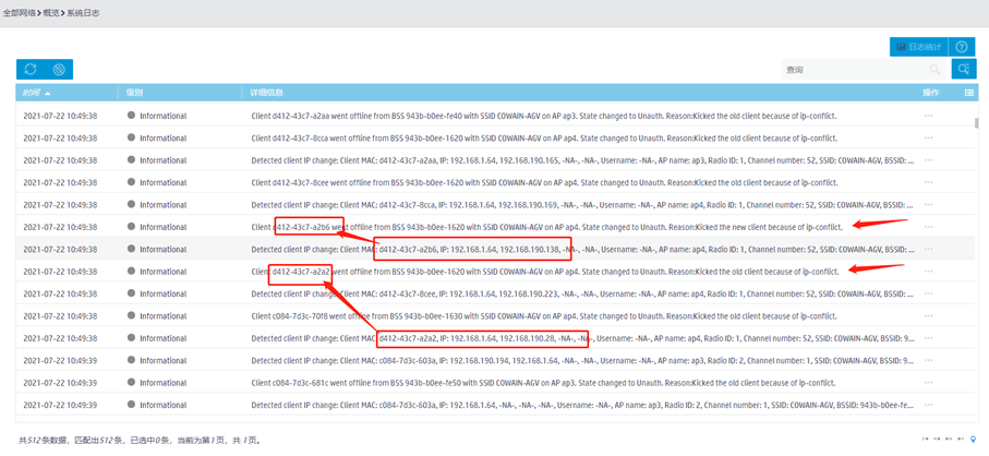 多个同类型的终端连接无线的时候,AC上能够看到终端有线的ip地址,从而导致AC认为地址冲突,继而将所有终端踢下线。