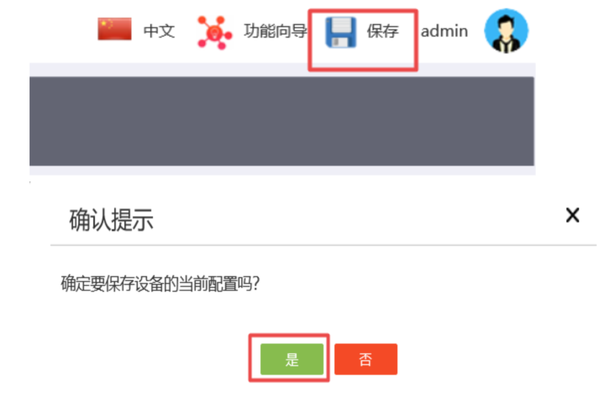点击设备右上角的【保存】,选择【是】即可保存配置