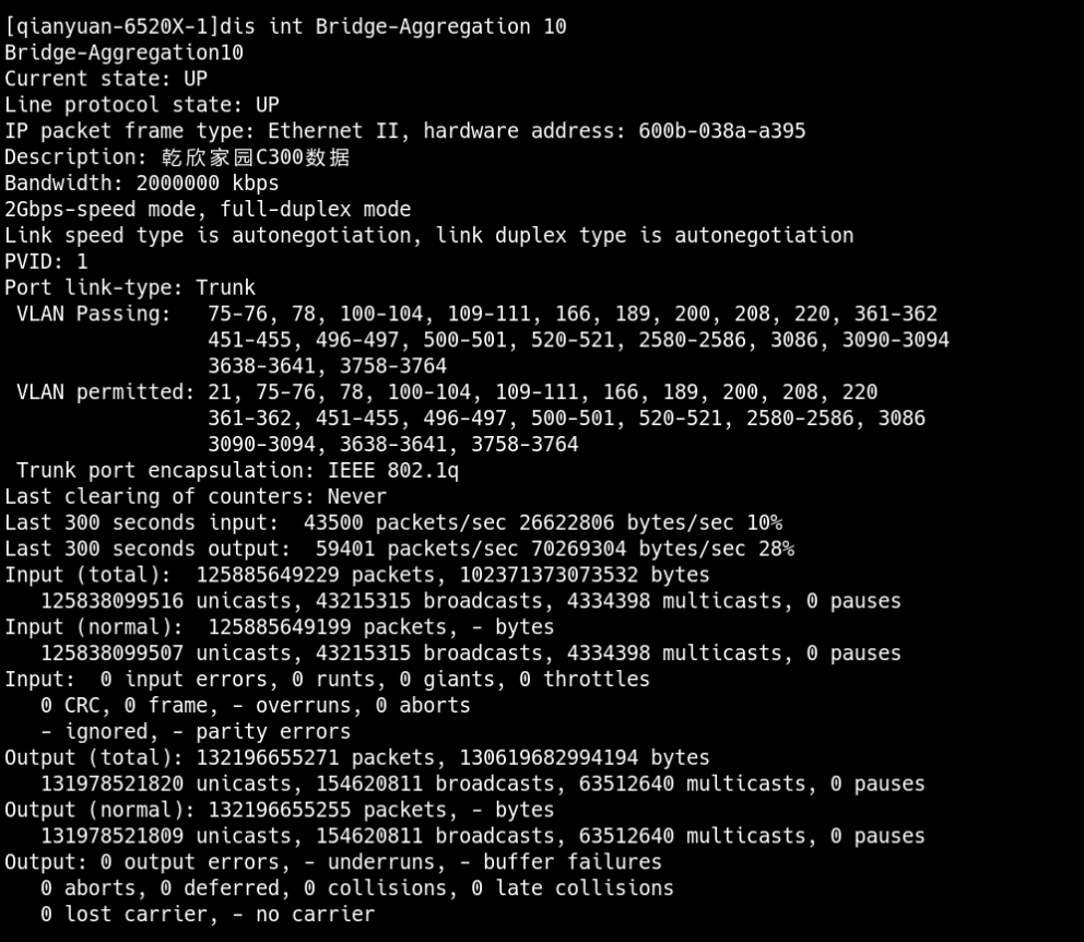 交换机一般只是通过查看接口来查看近300s内的一个流量统计信息 历史流量峰值一般都是基于配置镜像将数据流量镜像到网管平台来查看的。