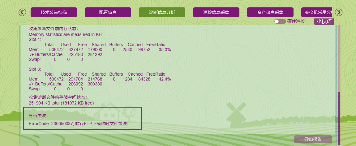 单台交换机无报错,组irf后诊断信息分析就报错,单台也无配置FTP功能项