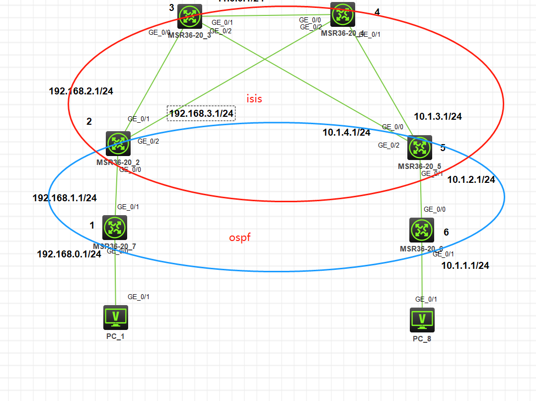 isis 如何引入 ospf路由 ISIS OSPF 都建立成功 PC1 ping不出去 ? 求大佬解答 有配置最好 谢谢