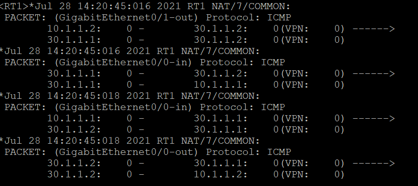 上述的黑底图片就是debug nat all显示的会话,刚才也看一下packet是一样的,就是图中最上面两个会话就是我的疑问点