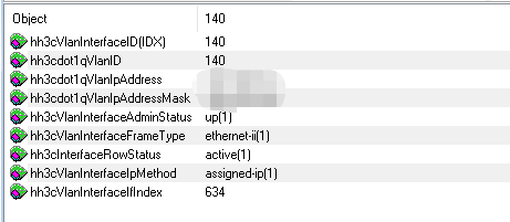 2. 通过查询表hh3cVlanInterfaceTable 获取到字段hh3cVlanInterfaceID(1.3.6.1.4.1.25506.8.35.2.1.2.1.1) [关联查询ipNetToMediaIdex == hh3cVlanInterfaceIfIndex]